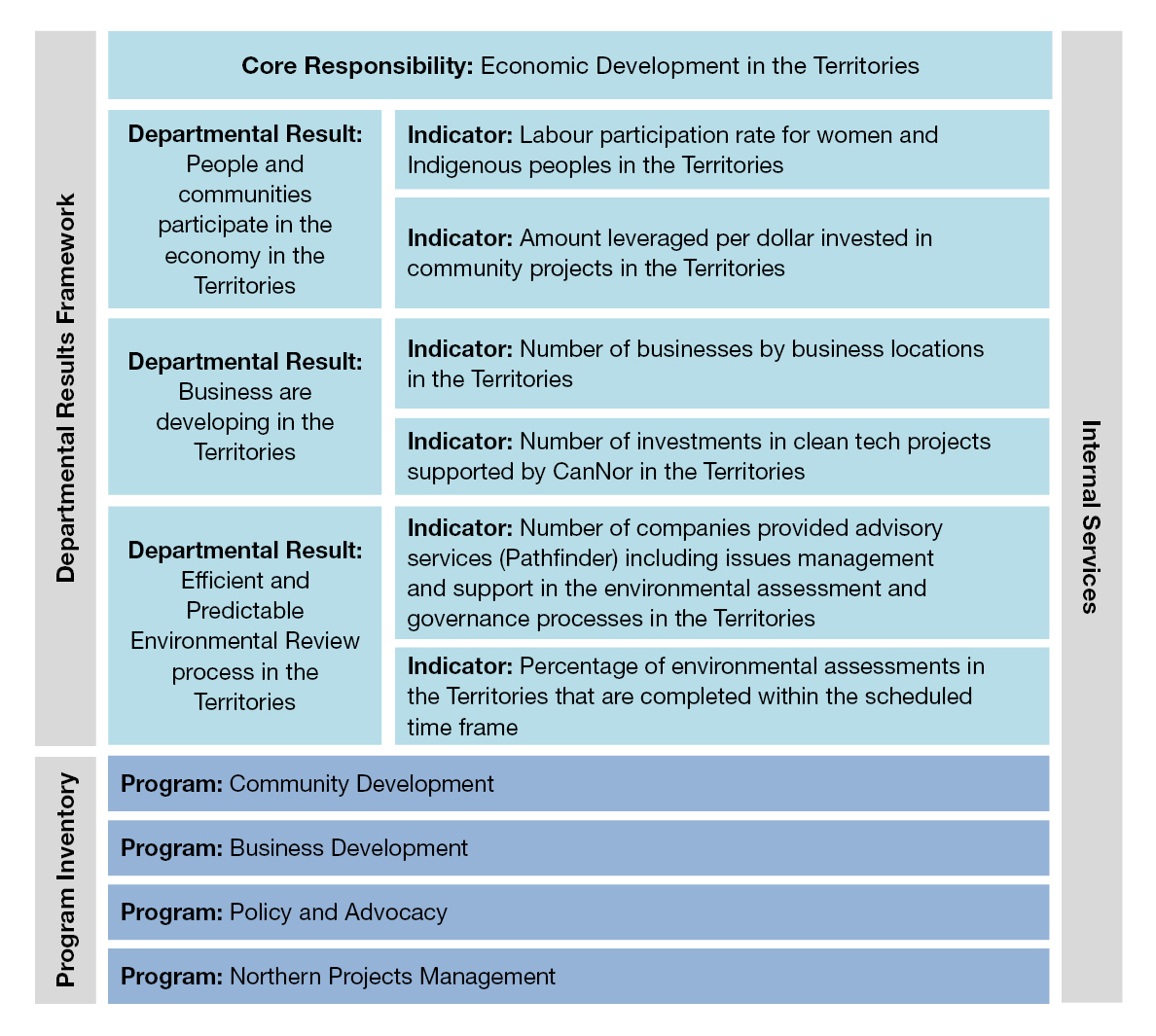 CanNor's Departmental Results Framework and Program Inventory of record for 2019–20 are shown below.