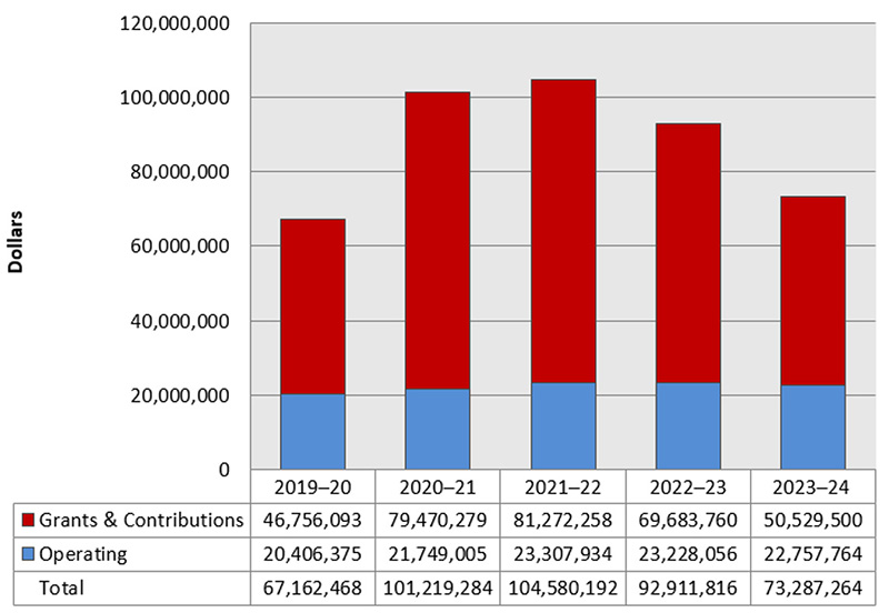 | Grants and Contributions | $46,756,093 | $79,470,279 | $81,272,258 | $69,683,760 | $50,529,500 |