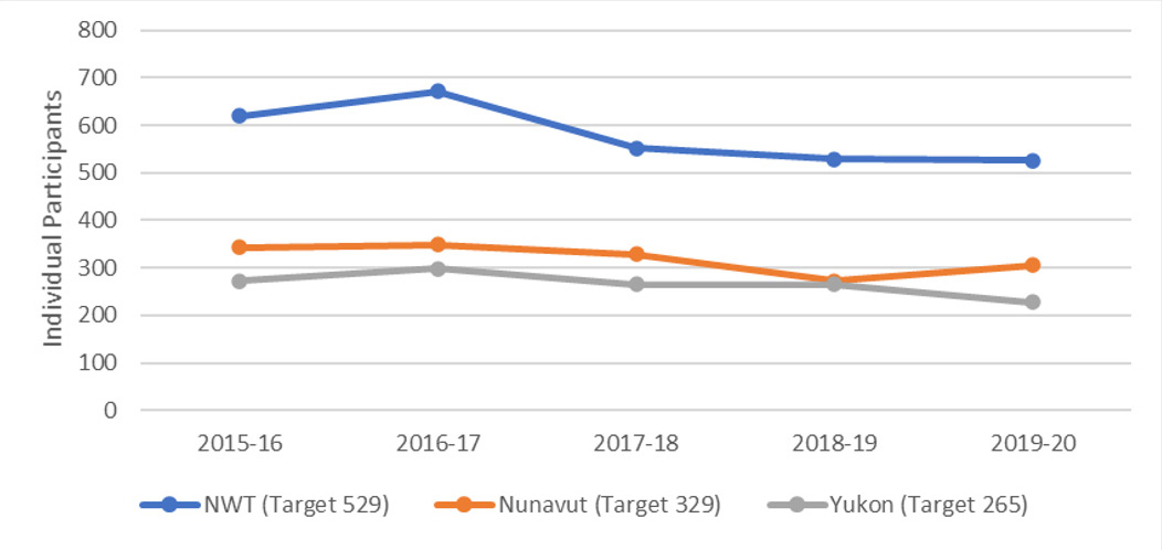 The Northern Adult Basic Education Program (NABEP) was established in 2011-12 as an education support program designed to help Northerners get targeted training so they can participate more fully in the labour market. The NABEP objective is to expand the territorial post-secondary educational institutions' basic workplace skills programs, particularly in remote communities and improving access to adult basic education.Footnote 1 The program is delivered through the three territorial colleges in Canada's North: Aurora College, Yukon College (now University), and Nunavut Arctic College (NAC).
