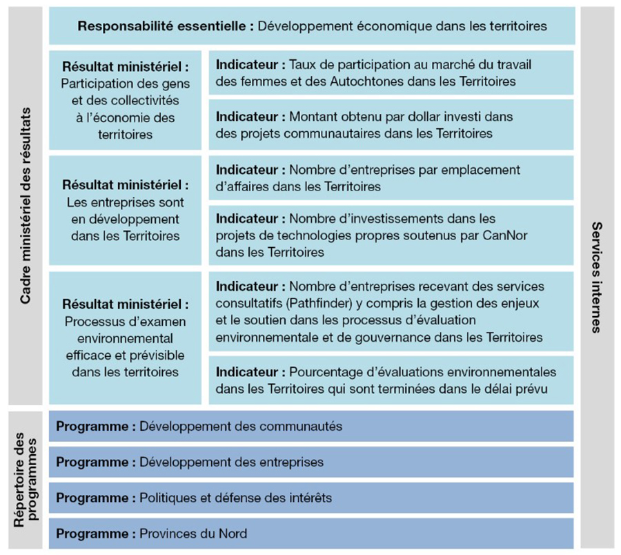 Le Cadre ministériel des résultats et le Répertoire des programmes officiels de CanNor pour l'exercice 2018-2019 sont illustrés ci-dessous :