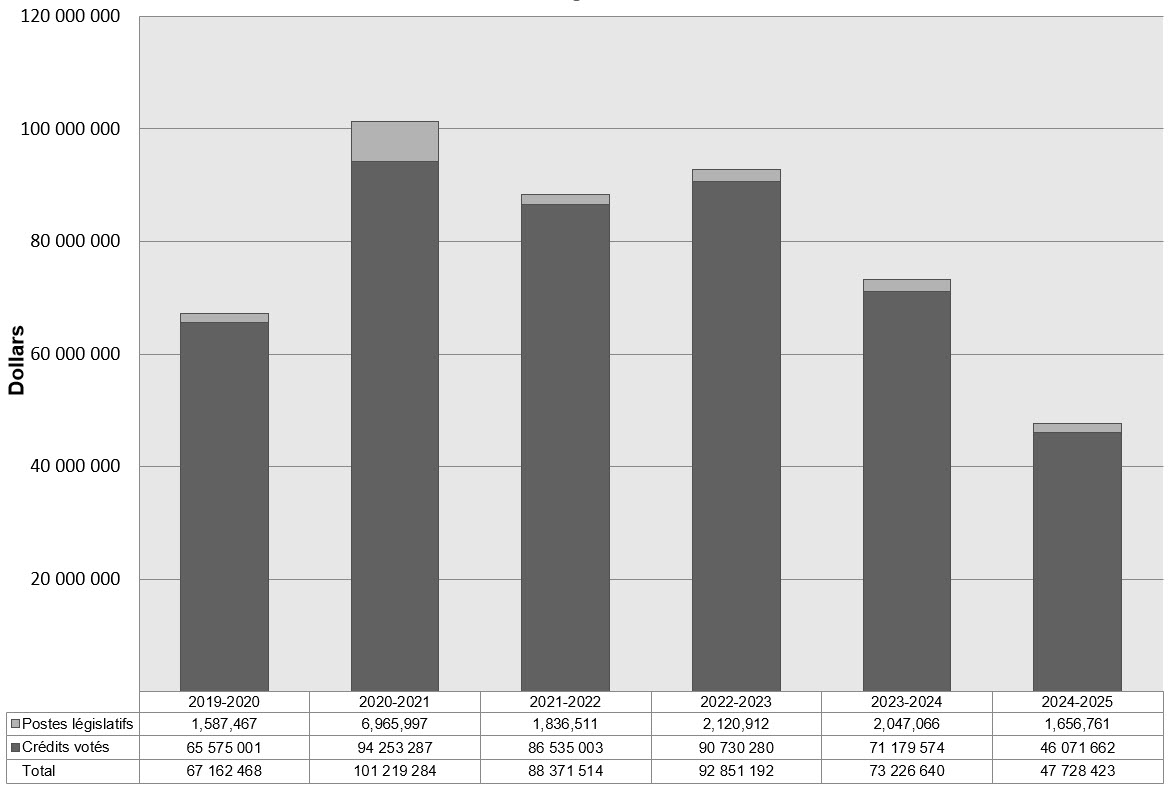 Dépenses approuvées annuellement par le Parlement par une loi de crédits. Le libellé de chaque crédit énonce les conditions selon lesquelles les dépenses peuvent être effectuées.