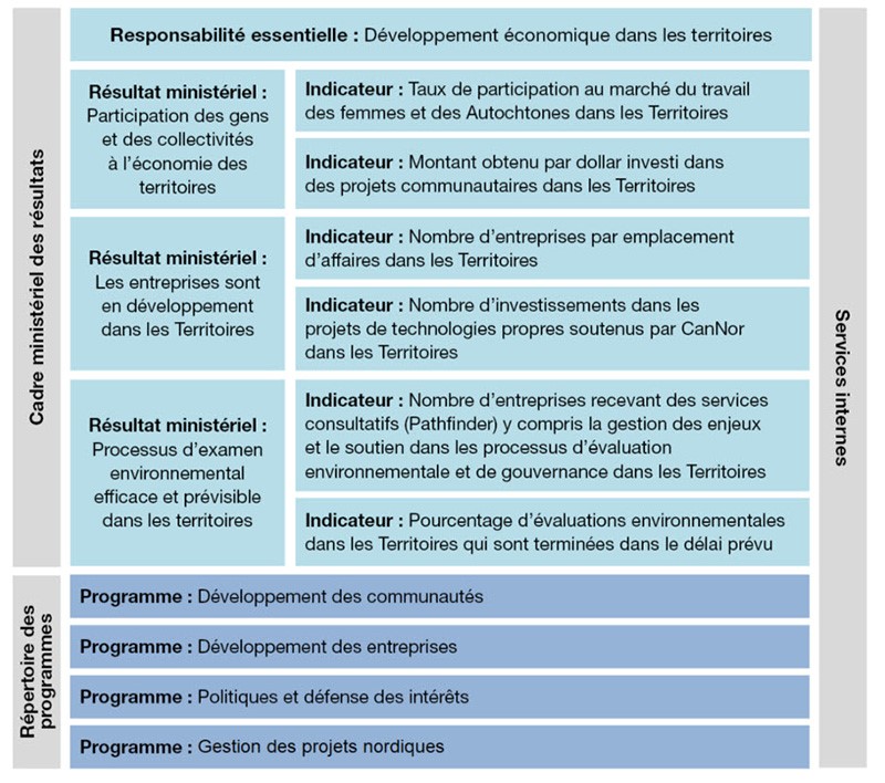 Le Cadre ministériel des résultats et le Répertoire des programmes de l'Agence canadienne de développement économique du Nord pour 2023-2024 sont les suivants :